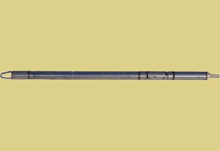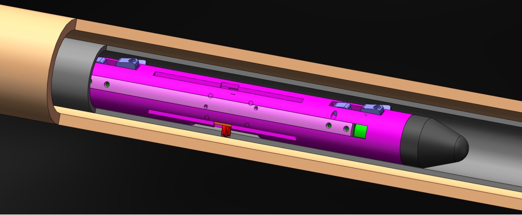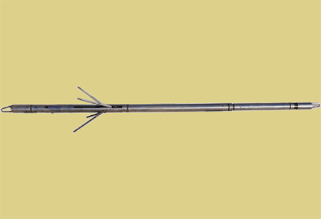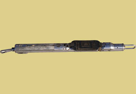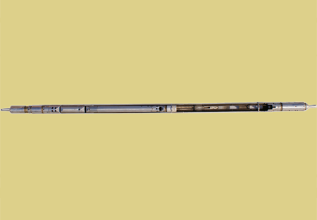 液壓推靠器配接能譜密度與微球復合探頭,使其貼靠井壁以滿足測…